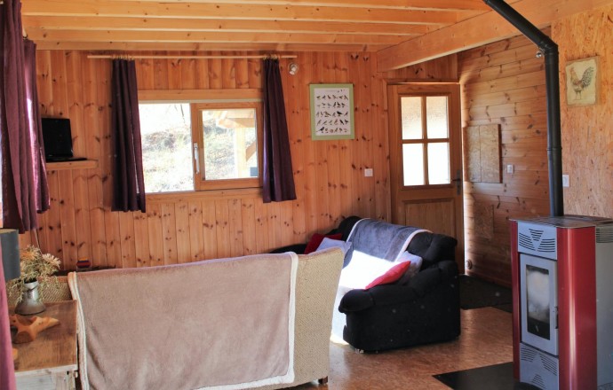 Le chalet comprend également un grand séjour avec un coin salon donnant sur une belle terrasse ensoleillée, une cuisine équipée et deux salles d'eau privatives dont une avec WC et autre WC indépendant.